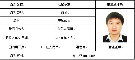 游戏谷策划总监,七雄争霸主策划邱果个人从业经历颇为神奇。入行以来所经历项目无一失败,无论是当初在搜狐畅游时期担任天龙八部数值策划,还是在2008年担任英雄之门主策划,还是2010年担任七雄争霸主策划。其参与的每款产品都是当时市场上的成功产品,他也是游戏谷最重要的核心资产,当前由他担任主策划制作的七雄争霸2也使整个业界对其新作充满了无限的期待。