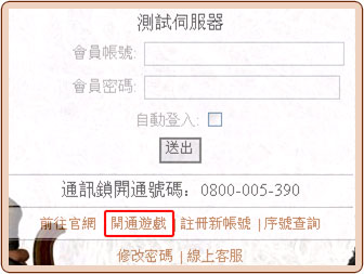 C、开通游戏后,页面将跳转到游戏登陆页面。请玩家再次输入内测帐号及开通帐号时,自行设定的游戏密码,就能正常登陆游戏。
