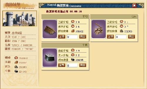 贸易!玩家可以通过这里来出售自己的资源物品来欢迎相应的铜币资源。