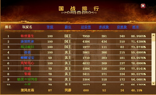 军事系统---国战排行