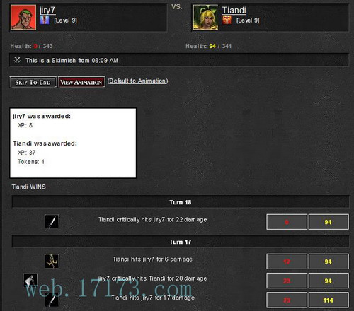 作为一款外国的WEBGAME游戏,全英文的操作式页面,难免让对英语比较苦手的玩家们望而却步。但是从游戏的本身来讲,游戏的操作并不是很难,可以说是非常的简单,只要在战斗区域里找询相应的玩家,进行PK,完成游戏初期提供的系统任务,就可以很快的上手了。也许你是个英盲,但是《Duels》要求的英语水平也是很低的,只要懂得基本的英语单词,就能够享受这款游戏带来的乐趣。