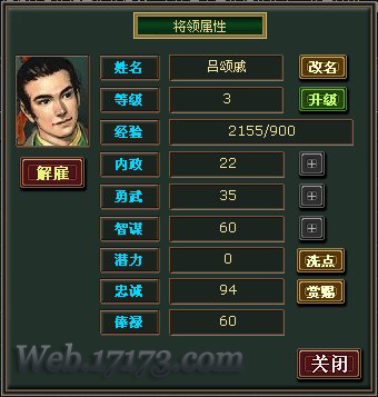 游戏中的武将并不是仅仅是通过系统给定的建筑中招揽而来,有些武将可都是在野的中立NPC哦。玩家通过开扩自己的领土的时候,就能够发现这些在野的武将,打败他,就能够收服他,让他成为自己的武将,同时,《热血三国》为了防止游戏中武将过多,非历史的武将在战争中死亡,就会当场消失,而历史的武将或是变回中立武将,或是败师回朝,或是成为别人的武将,都受到武将对于玩家的忠诚度。