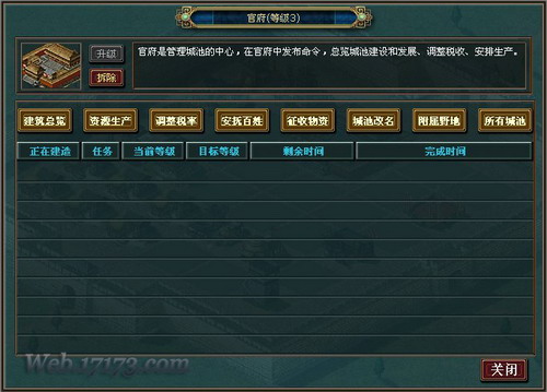 作为一城之主,你不能对自己的城内的事情一无所知吧!不是只要建设好城内的设施,就能当一个好的城主。要想当一位名君,那可是要花相当多的功夫在里面的。《热血三国》对于内政这块也是相当的重视,通过内政系统的使用,玩家能够对城内的一些事情进行操作,提高城内的建设进度。