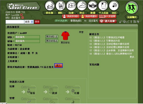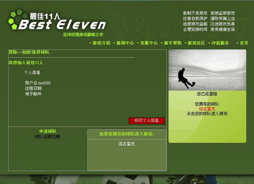 呵呵,前面的话当然是小编我的个人瞎想啦,主要是今天小编涉足的游戏是一款虚拟足球经营的游戏,所以小编我就在那胡乱瞎想了呢!言归正传,《最佳11人足球经理》是一款国内自行开发的网页式虚拟经营类游戏,为了满足国内球迷们的愿望,让大家都过足一把足球经理的瘾,福建创新大陆网络科技有限公司开发了这么一款简单快捷的页面游戏。