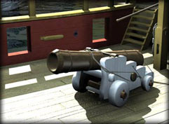 在15~18世纪的三个世纪里,它们被安装在所有的军舰上,必要时也会被安装在商船上,所以火炮也走进了海盗的历史征程中。在《海战英豪》中有着丰富的船体道具设定,船体、船帆、船头、火炮等使得每位玩家有着各种不同的战舰配置、不同的玩法;所以众位玩家更能清楚的体会到火炮对于战舰的重要性。鹰炮、长管炮和散弹炮等各种制式的火炮,它们在游戏的用途是不同的,但散弹炮毫无例外地在任何海盗那儿都是需求量很大的。让我们来欣赏一下《海战英豪》中这样的火炮配置。