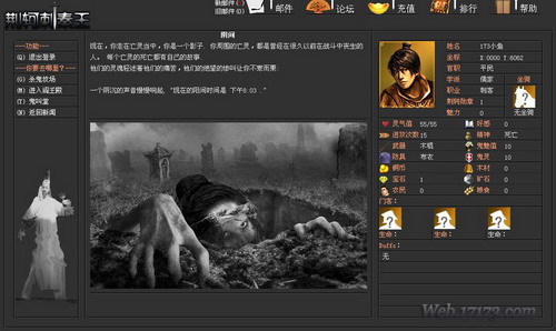 与以往的角色扮演游戏不太一样,当人物死亡之后,并不是马上回到原有城市里直接复活,而是回到阴间,通过与阎王交换好感度来进行还阳,而与阎王好感度则是通过在坟场杀鬼来获得,此时这里的人物属性会发生一点变化,不在是以活着时候的属性而定,当然也可以以直接花费5个宝石的代价直接复活。(PS:阴间也和外面一样,玩家可以相互聊天。)