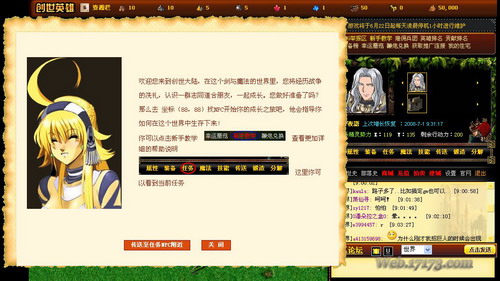 新手玩家在刚刚进录游戏的时候,除了刚开始的NPC系统新手指导之外,玩家可以去地图场景(坐标:88|88)找任务NPC接受游戏中提供的新手任务,通过这些任务来对游戏进行一个初步的了解。
