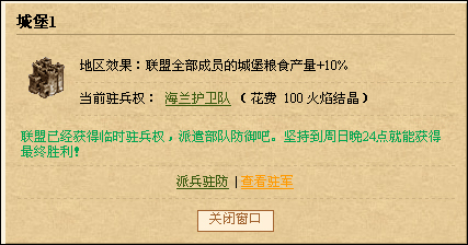 当你的获得胜利后,城堡的所有权就属于你所在的联盟了,你可以召唤盟友派兵驻防,这里要提醒大家一点,当盟友的部队在驻防途中,据点被其他联盟夺取,驻防部队到达据点后不会触发战斗,将会返回出发城市。所以大家一定要及时注意前方的战争状况迅速作出调整。