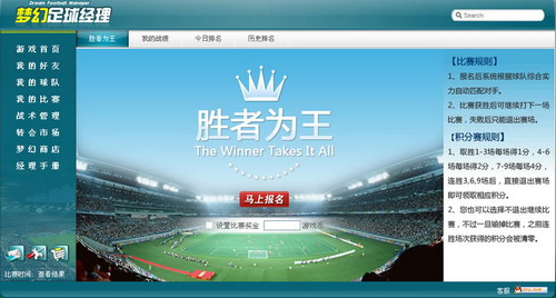 终结中国队疲软的神话,实现你的终极足球豪门的梦想。 就让心中的激情与手中的鼠标捆在一起,7月7日,是球迷一定要来!游戏网址:http://zq.xba.com.cn
