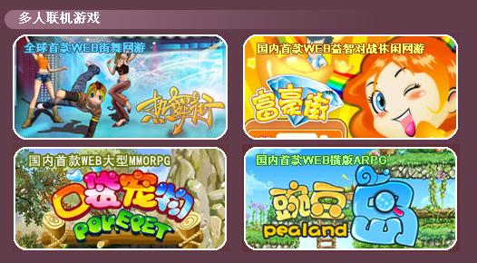 除了《热舞街》之外,豌豆互动还拥有类大富翁的《富豪街》、类冒险岛的《豌豆岛》及大型mmorpg《口袋宠物》几款产品。刚刚成立一周年的豌豆互动,已经将各类游戏里的经典代表作都搬上了网页。这几乎将彻底改变以往网页游戏“款款皆策略,网页无大作”的既定形象,随着各大游戏厂商越来越重视网页游戏,网页游戏多类型时代也将到来。