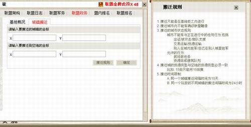 基地板形成之后,盟主或者副盟主就有权在专用的基地板界面中对基地板范围内的本盟城市进行搬迁操作了——当然,被搬迁的城市必须满足一定条件!