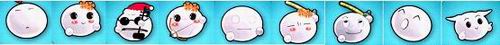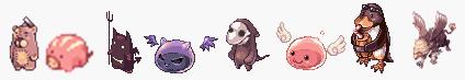 以上图左起分别是熊宝宝、猪猪(蓝宠)、小恶魔(紫宠)、恶魔波利(紫宠)、火星人、天使波利(紫宠)、鸭嘴兽、年兽。