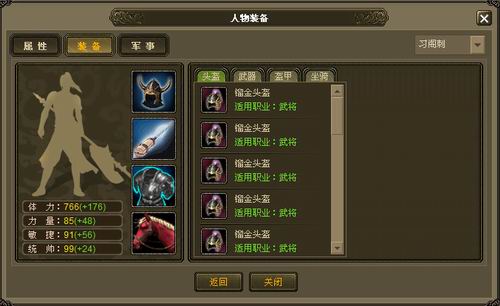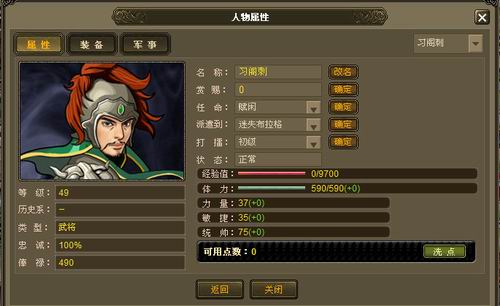 再一次打开“人物属性”面板,去装备你所得到的武器装备,为你的爱将配上最好的装备
