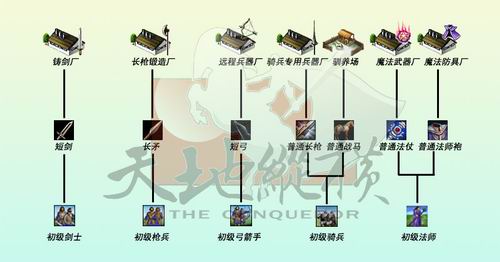 一、建造1级的兵营,然后,当你查看“招募军队”的页面时,你就会发现多出了一项可以招募“初级弓箭手”的项目。以下以初级弓箭手为例子,在你升级城市之后,你将会得到更多更强力的兵种。但是,目前你还不能招募初级弓箭手,你还缺少一样东西——“短弓”。