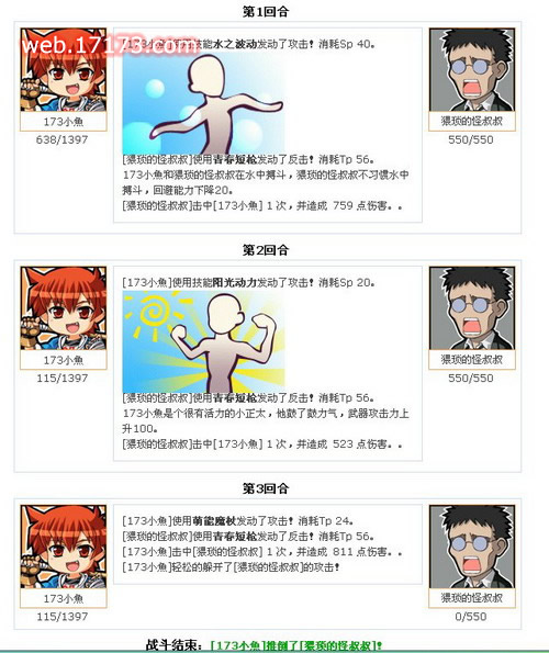 网页游戏,但游戏过程中的战斗还是相当的刺激的,您再战斗之前不仅要观察好对手的状态,还要认真的审视敌我双方的装备,并且同敌对阵营之间的PK较量中,获胜方是会获取失败方的一些金钱的(不用担心,不会很多的),而失败方则会损失与其相当的金钱,并且失败方会被毫不留情的赶出所在的城市返回自己的出生地的。我们的地图移动系统设定为每5分钟才能进行一次移动,并且在进行PK以后也会进入移动CD时间,也就是说在PK中即便是您取得了胜利,您也只能在5分钟后才能离开该城市,这样一来就战斗会显得更加激烈,因为在这5分钟内,也许会被对方的玩家合力赶出该城市。