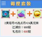 增值套装主要有:“必备大礼包”、“调理套装”、“快捷套装”、“恢复套装”、“辅助套装”、“开孔套装”、“强化套装”和“挂机套装”。针对玩家的个性需求所组合,价格优惠在30%以上。真正的超值大放送。