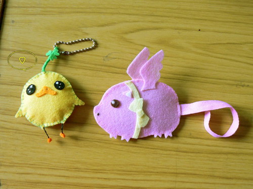 《乐土》美女玩家海丝特制作的不织布胖胖鸭和小飞猪。胖胖鸭是《乐土》今后的版本会推出的可爱宠物,小飞猪则是所有新手的伴生宠,它们陪着玩家度过乐土中最初的欢乐时光。