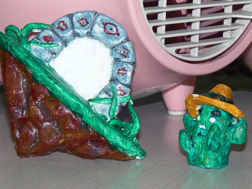 看过海丝特MM的不织布作品,美女卷纸公主又为我们带来纸粘土制成的乐土之门和仙人掌。什么是纸粘土呢?恐怕很多玩家都没接触过吧,纸粘土是以纸浆、粘土、胶所构成的混合物。由于纸粘土的纸浆纤维是松软的,所以可以用来制作细致精巧的造型。