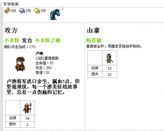 这下可怪了,一直听说山寨打劫路人,在游艺《泡面三国》,玩家们处理完国家大事,有事没事就去山寨忽悠忽悠寨主。说不定还能抢来寨主的宝物呢!给沉闷的三国游戏填上一道亮丽的风景线。