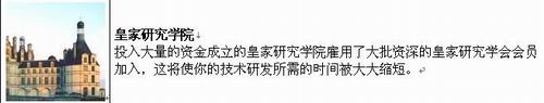 皇家研究学院是科技发展的终极研发机构,但也需要科技基础发展到:研究学院(等级15) 、市镇中心(等级15) 、联邦政体(等级7),想必皇家研究学院众多玩家的超级愿望,在先进的科技辅佐下,玩家的战队将更加的船坚炮厉。