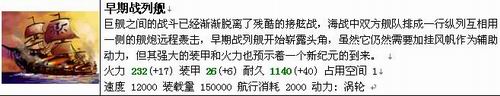 新出现的早期战列舰系统可不是那么容易达成的,需要科技发展升级到:造船厂(等级16)、船舶技术(等级16)、火炮技术(等级16)、远洋学说(等级14、蒸汽涡轮(等级12)