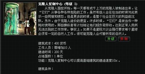 在《诸神的黄昏里》玩家需要建立“克隆人复制中心”,才可建造克隆人军队,并且克隆人的数量需要进行控制,不然很可能克隆人就会取代自然人的。但是当你成为几十个星球的主宰,拥有几十亿子民的情况下,你的克隆人大军将是无所不能的!