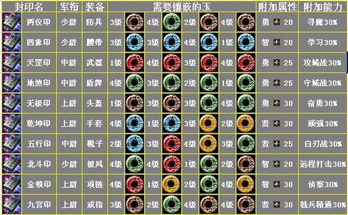 每个封印石板上都有其蕴藏的封印力量的名字。也正是这个名字决定了封印的力量。按照封印要求镶嵌对应的玉石后既启动封印,发挥威力。