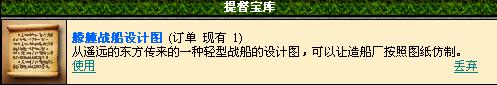 订单是最能让你与众不同的道具。有了它,你便有机会拥有一些和别人不同的船或炮,这可是在“造船厂”和“防御”里都找不到的。让你个性十足,过瘾到底。至于它们的性能和威力,那就要在你有幸得到它们的时候自己体验一番了!