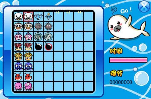 随机出现许多不同的鱼类角色,用鼠标点击鱼,再点击邻近的鱼,使两个鱼调换位置。如果调换位置后,其中一方鱼形成了横或竖列完全一致的图标,只要三个(或三个以上)都是同一颜色的,就可以消除并得分。每关以把所有哭脸消玩算胜。