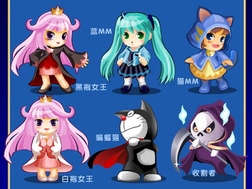 在武功熊猫的带领下,我们的新成员逐一闪亮登场啦!他们分别为:武功熊猫的师傅小熊、喜欢卖弄却又技艺不精的兔老大、最自恋的芙蓉版猪MM、性格憨厚却人见人怕的虎GG,还有美丽的双胞胎黑白袍女王、总是形影不离的蓝MM和猫MM,以及准备在万圣节大展身手的收割者!啊,一口气全部介绍完毕,我们家族真是阵容强大,人丁兴旺啊!他们的性格和外表一样各不相同,但都身怀绝迹,并且都有一颗热情的心,欢迎着你们的到来!