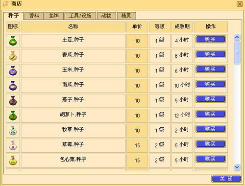 商店里物品种类十分丰富,按种子、香料、鱼饵、工具、设施、动物、精灵分类。在“种子”栏内购买1份土豆种子,即可回到“日常任务”交付完成了。这个任务的奖励非常重要,除了金钱和水煮蛋,还有3点技能点数,有了技能点数就可以学习技能种田了哦。