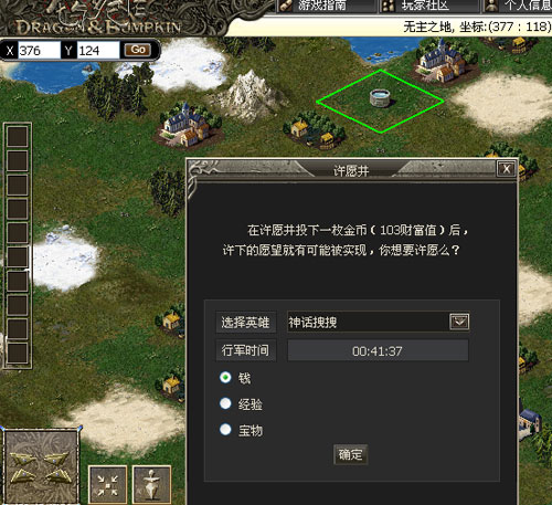 许愿井是整个游戏中比较有特色的一项功能,在DNB的世界中,不论在那不起眼的湖泊里,还是在漫无边际的沙漠中,都有可能蕴藏着无尽的珍宝。带上你的英雄去探险吧,在探险过程中随机任务将会层出不穷,让你在体会游戏乐趣的同时还能享受探险的刺激。