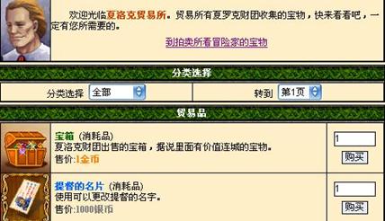大家可以很直观的看到这个贸易所可以做的事,除了将事务所中的要求皇家海军保护的功能和市镇中心改名功能被更改为道具使用外,主要就是能让玩家相互赠送金币,这可以缓解有些玩家急用金币或银币。而且,这次更改还有一个能极大方便玩家的地方,就是那个购买数量框,以后玩家再也不用一个一个的买宝箱,而是一次想买多少就输个数字,点“购买”就行了!贸易所看似一个很简单甚至似乎作用不大的功能,却能在游戏后期发挥很大的作用,让我们拭目以待!