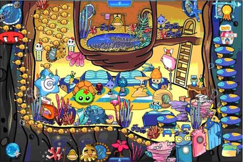 1.撞宝箱:海底世界的乐趣之一在于经常可以遇到失落在海底的宝箱,而每次撞到宝箱,你就可以得到贝壳,真是太爽了!据说海底还有一种宝箱其中装了特别稀有的物品,而这类宝箱则是要大家一起撞,甚至要抢的,好期待呀~~
