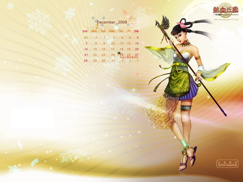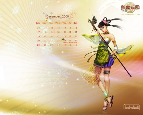 今天是2008年12月的第一天,《热血三国》官方运营团队乐港科技在此祝福大家在新的一个月中31天天天开开心心, 744小时时时快快乐乐, 44640分分分健健康康, 2678400秒秒秒幸幸福福! 送上我们准备的新年第一份礼物—2008年12月份精美月历壁纸,每一个HAPPY DAY,我们都会陪伴在您的身边!