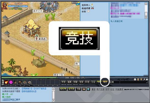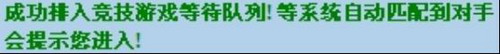 点击后,你就进入”竞技”等待队列中,此时系统会自动寻找同样存在于”竞技”等待队列中,且与你等级相符的玩家进行”竞技”,在状态窗口会出现如下提示: