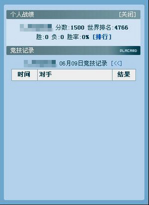 点击 [个人战绩]栏中的[查询],则可以查看自己参与竞技的各种统计数据,如下图所示: