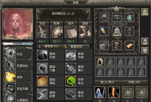 战场上的多面手,她能胜任各种工作,能力很平均,但若认为她容易欺负的话,你就错了,毕竟有5%的概率,她可是近乎于无敌的哦。(宗师幸运+神佑:每个单位独立发生幸运效果,效果持续一回合,每回合有5%的几率造成1.5倍的伤害)
