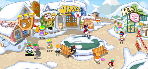 摩尔庄园是一片依山傍水的庄园,其中包括了很多场景,如摩尔城堡、淘淘乐街、爱心教堂等,用户可以在场景中穿梭,特别值得一提的是,摩尔还可以上天入地,不过遗憾的是目前还缺乏在不同空间的场景。
