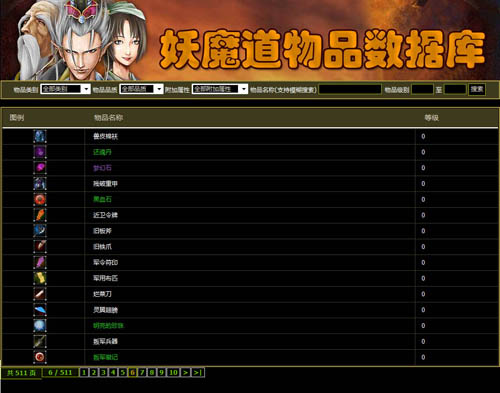 根据广大玩家的一致要求,【妖魔道】运营团队于近期开发出了物品查询数据库,方便广大玩家查询游戏中的物品,其中包括装备,药品,材料,道具,技能书等几大类,数十小类的物品,玩家可以通过查询数据库,了解装备信息,灵活搭配自己的装备,来迎接各种不同的挑战。