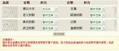 爵位可以让你招募到更厉害的武将,游戏中每位玩家可招募的武将都有一定的资质,资质的好坏决定着武将的成长,除了运气问题外,爵位是决定你招募武将优劣的重要元素,爵位高则能招募到更厉害的武将。招募到武将后还可以提拔你的武将做官,做官对武将都有不同的能力加成,会让你事半功倍。