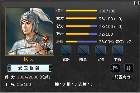 《三国之群雄崛起》作为一个战略类的游戏,战斗部分自然是游戏的重头戏。玩家的武将可以搭配各种兵种包含刀兵、枪兵、骑兵、弓兵等兵种,在战斗的时候还可以选择各种阵法迎战,例如一字阵、八卦阵、鱼鳞阵等十余种阵法供你选择。气势磅礴,荡气回肠,是三国系列网页游戏的不二选择。元旦期间还将开放登陆即送元宝活动,假期玩《群雄崛起》,奖品拿翻天。