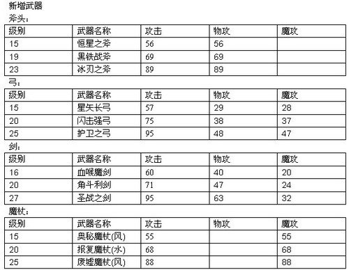 5.新增剑16级至27级剑三把。