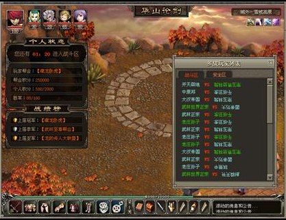 本次终极封测的《华山论剑》贺岁版,不仅新增加了兵家和道家2大职业,还全新开放了制衣、锻造、制药、玄学、武学、采矿、狩猎、伐木、采药等2大体系总共9类玩家技能特长。此外,武林门派方面也是贺岁版《华山论剑》最诱人的卖点之一,《华山论剑》总共设有16大武林门派并整体划分为正、中、邪三大江湖体系,而贺岁版则开放有少林、逍遥、移花、五毒、明教和天山等亦正亦邪、个性迥然的6大武林门派,玩家可以根据自己的喜好随意选择加入其中之一,并可通过新开放的PVP战斗功能而获得的“君子血”或“邪恶魂”等道具,用以提升自己在所属门派中的声望,让玩家真实体验到以往只有在传统MMORPG网游中才可能有的门派对立、相生相克且刺激无比的武林生涯。因此,贺岁版《华山论剑》被玩家和业内人士称为迄今为止玩法最多的武侠网页游戏。