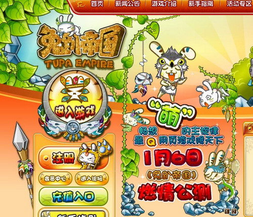 从2008年10月28日内测以来,来自全国各地的众多兔饭们点击登陆《兔趴帝国》官网,通过这样一个绚丽可爱的平台,《兔趴帝国》将超萌超可爱的兔子形象第一时间传递到兔饭们的视觉神经,将热腾腾的新鲜有用的游戏资讯精确送达到兔饭们的手中,当兔饭们对游戏有新的创意和想法,当新手玩家在游戏中遇到困难,也会立即登陆《兔趴帝国》的官网寻找答案。不经意间,它已成为官方和兔饭们沟通的有效桥梁。
