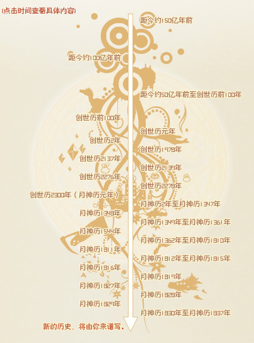从距今约150亿年之前的那次物理基质与灵魂源头的碰撞,到女神创造出人类、魔族与精灵三族子民的创世历元年,再到月城自三色月光交汇之处拔地而起的月神历元年,直到你真正降临这个梦工场的月神历1837年……这么长的时光之中,究竟发生过怎样的故事?这谜一样的世界,是否已让你迫不及待地想要赶快揭开谜底?为了让所有玩家都能够更好地融入这个由美眉组成的炫美世界,我们很早便在MM官网上,特别为大家准备了记载着这座女神之城历史的时光树!在那枝芽茂盛的时光树上,你能够了解到这个世界中所有故事!