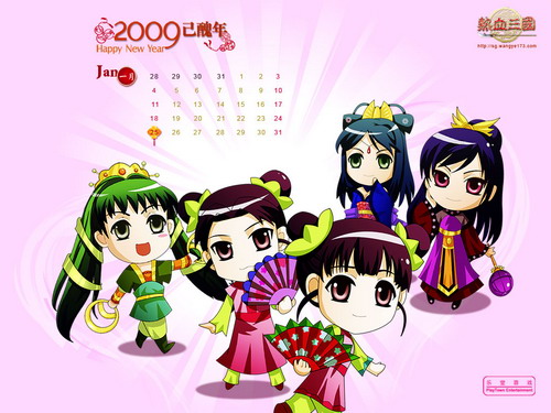 不知不觉,时间已经迈入了2009年。今天是2009年1月的第一个星期,《热血三国》官方运营团队乐港科技在此祝福大家在新的一个月中31天天天开开心心, 744小时时时快快乐乐, 44640分分分健健康康, 2678400秒秒秒幸幸福福! 送上我们准备的2009年第一份礼物—2009年1月份精美月历壁纸,每一个HAPPY DAY,我们都会陪伴在您的身边!