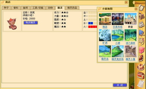 从“小镇地图”进入“商店”,选择“精灵”,点击“购买精灵”即可获得该精灵。