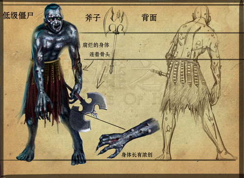 看上去很恶心的一种亡灵生物,不过僵尸可算是大家的老朋友了,生化危机中想必也没少杀吧!而《英雄之城》中的僵尸却并不令人感觉可怕,难道是它带着的耳环让人感觉到很搞笑么?