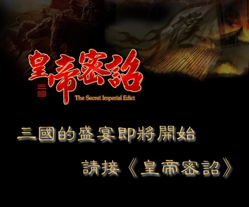2009年,我们将带给你不一样的惊喜和体验。沙场驰骋,逐鹿中原,开创一个三国的时代!《皇帝密诏》封测即将启动。